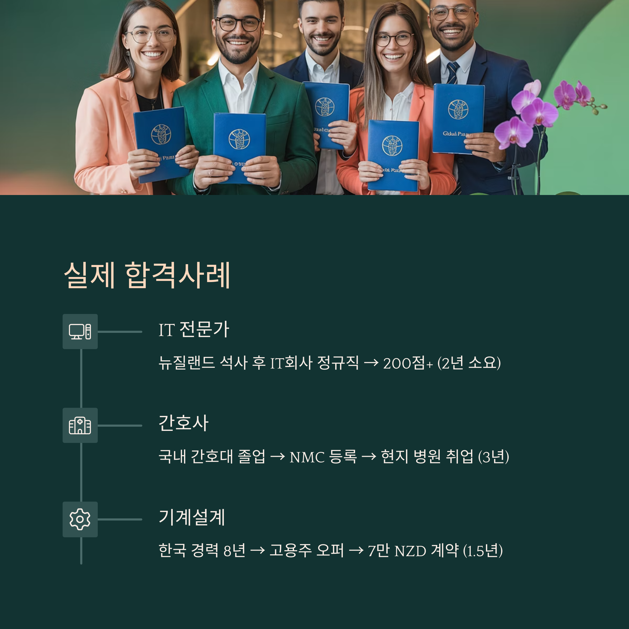 ⚙ 사례3: 한국에서 기계설계 경력 8년 → 고용주 오퍼 받음 → 연봉 7만 NZD 계약 후 바로 초청 (1년 반 이내 승인)