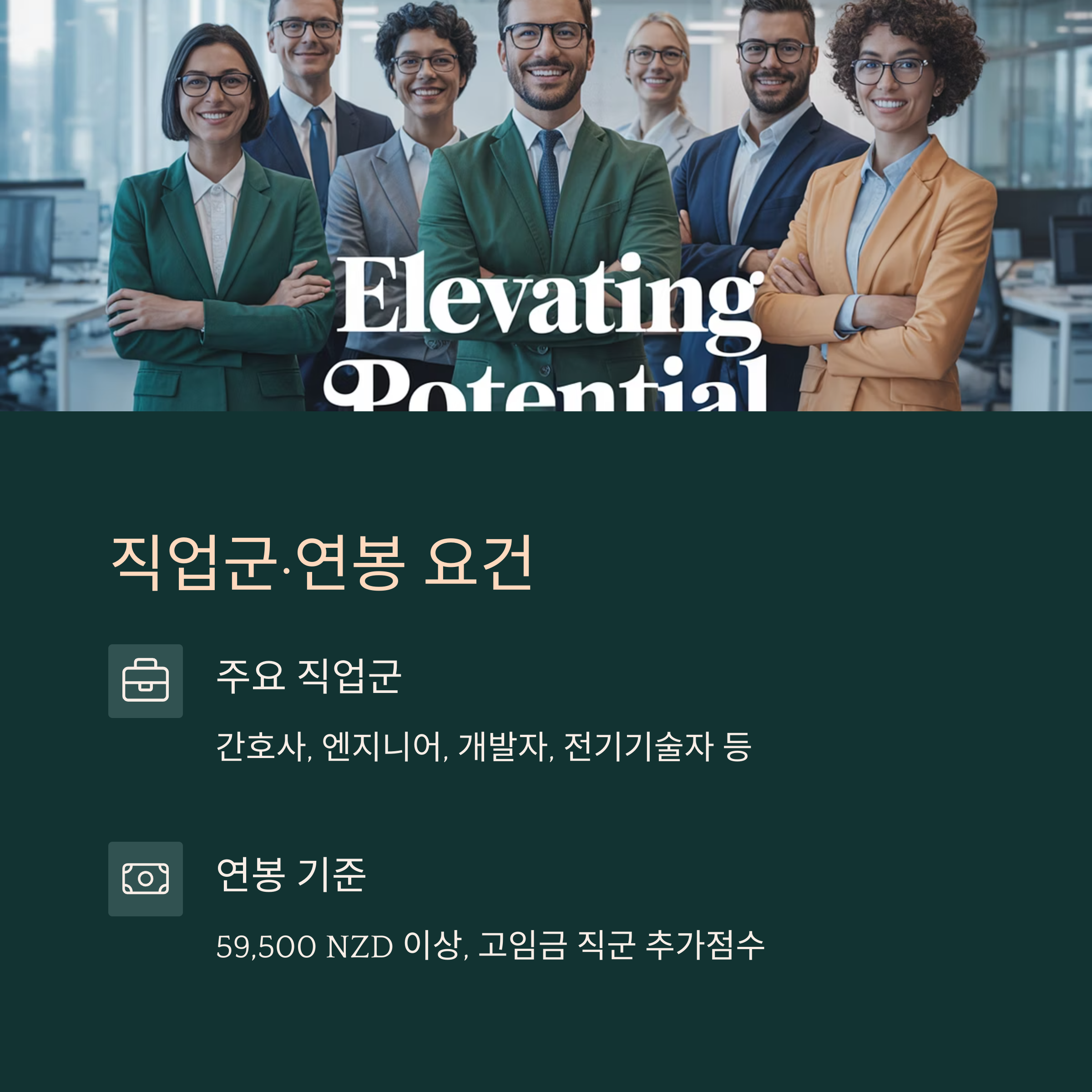 둘째, 연봉은 2025년 기준 최소 59,500 NZD 이상이어야 기술이민 점수제 계산에 포함될 수 있어요. 일부 고임금 직군은 우대점수도 있어요.