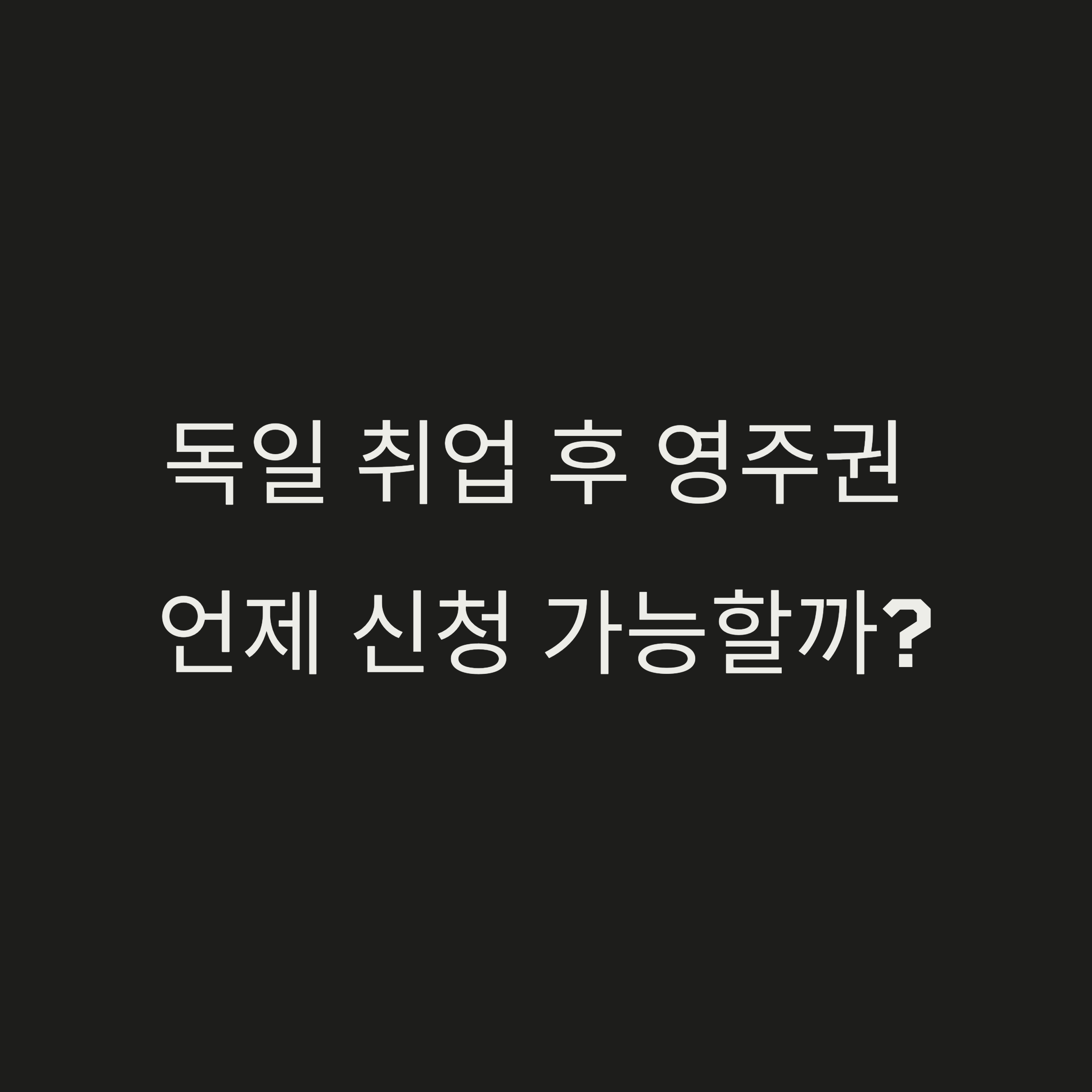 1. 독일에서 4년 이상 합법적으로 거주 대부분 취업비자 소지자는 4년 이상 독일에서 합법적으로 거주해야 영주권 신청이 가능해요.