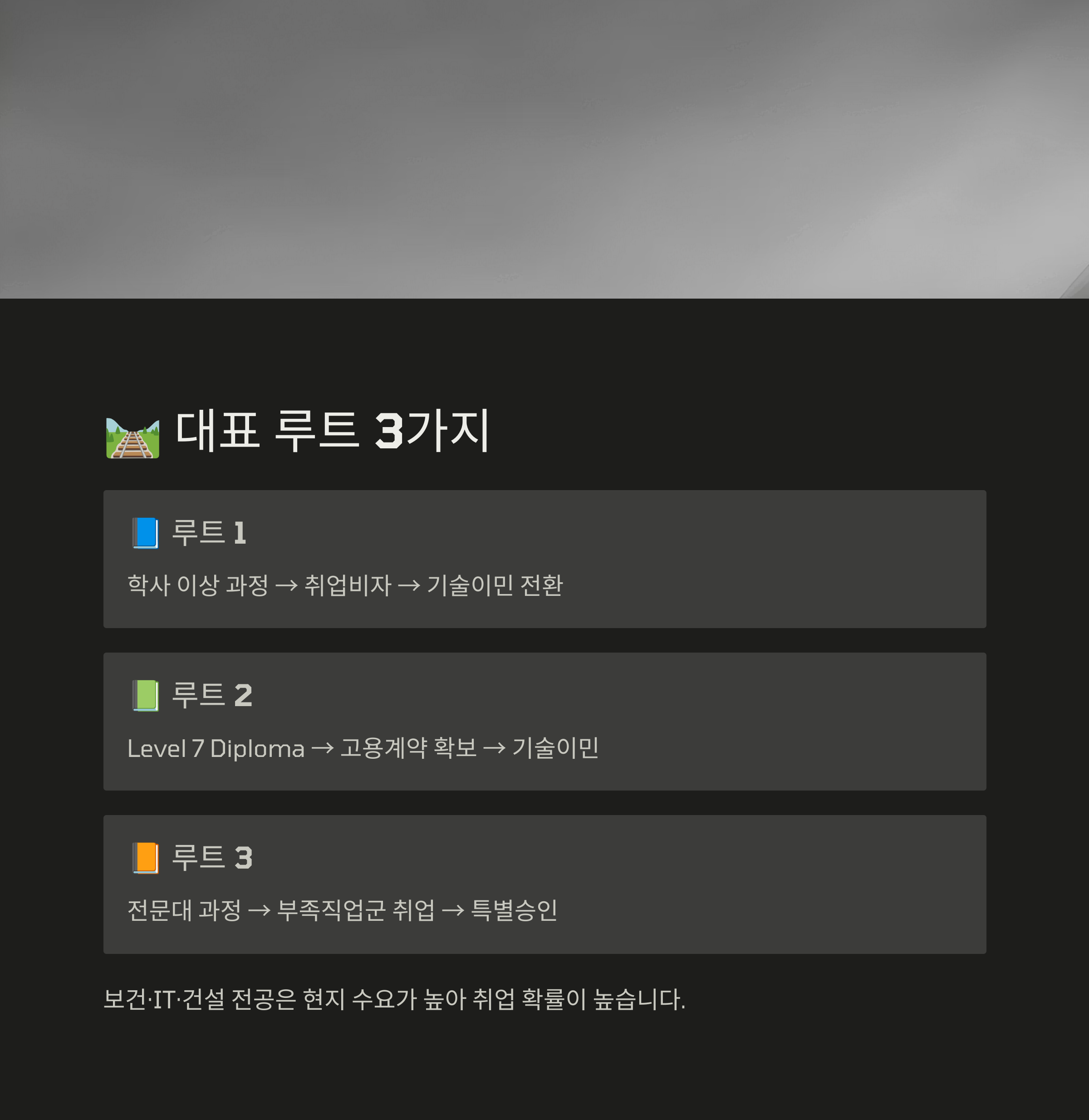 - 📗 루트 2: Level 7 Diploma (기술직 중심) → 고용계약 확보 → 기술이민
