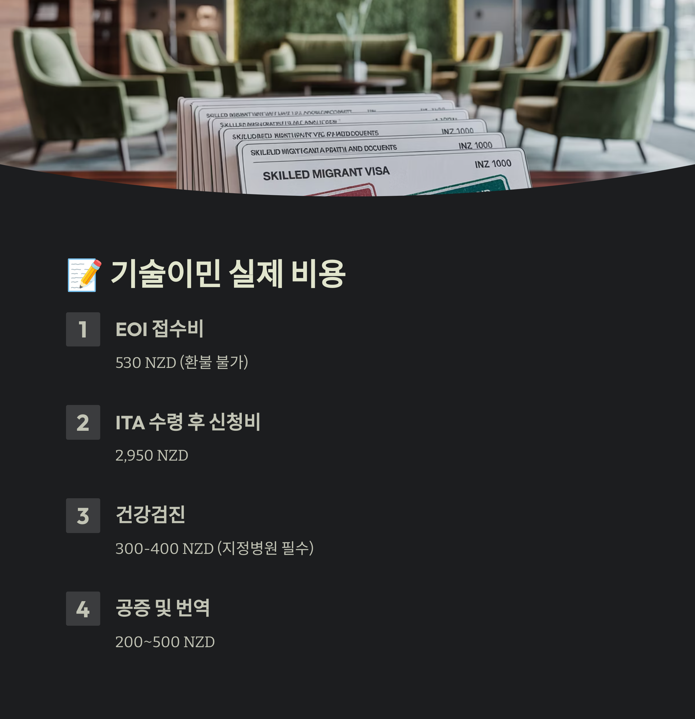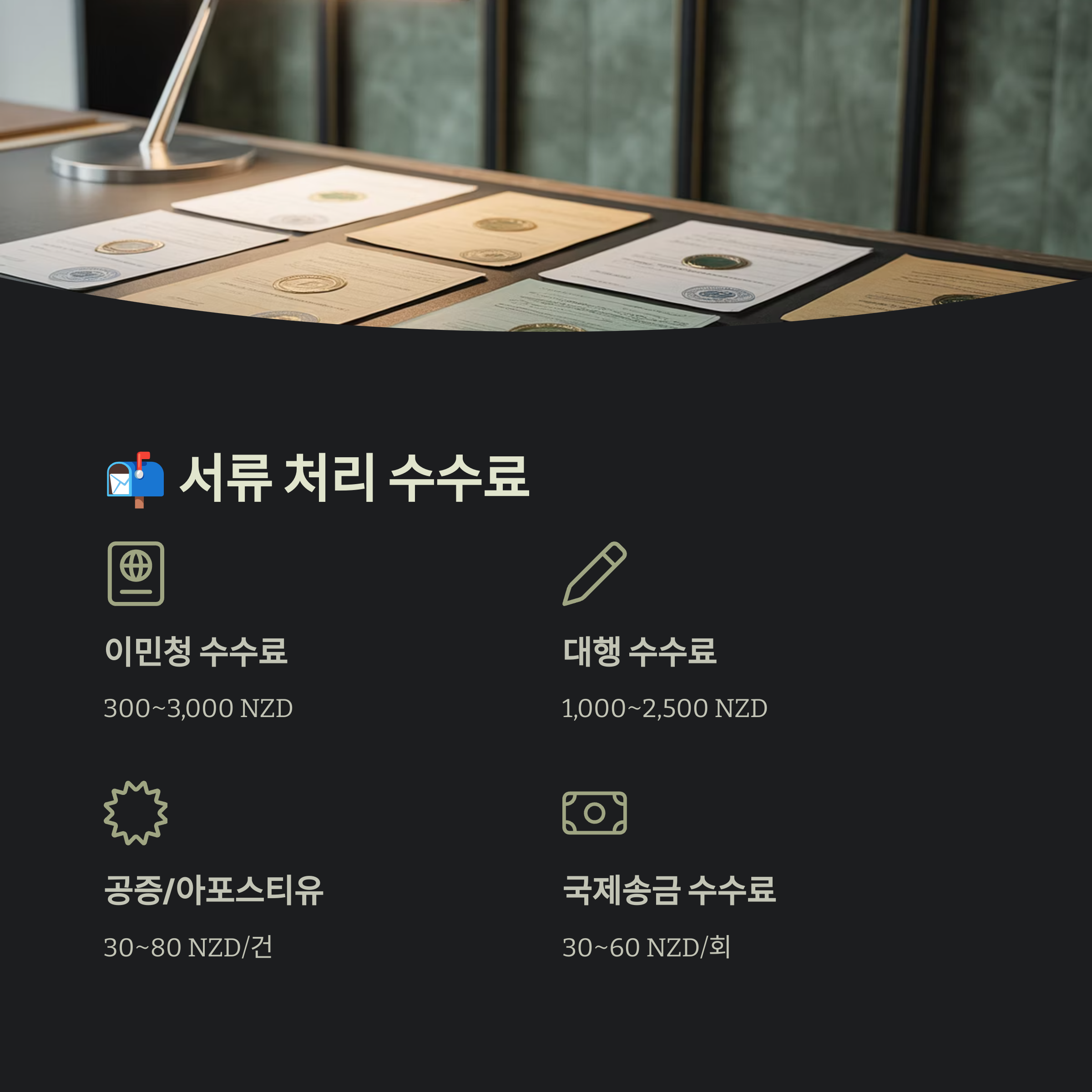 - 🧾 이민청 수수료: 300~3,000 NZD