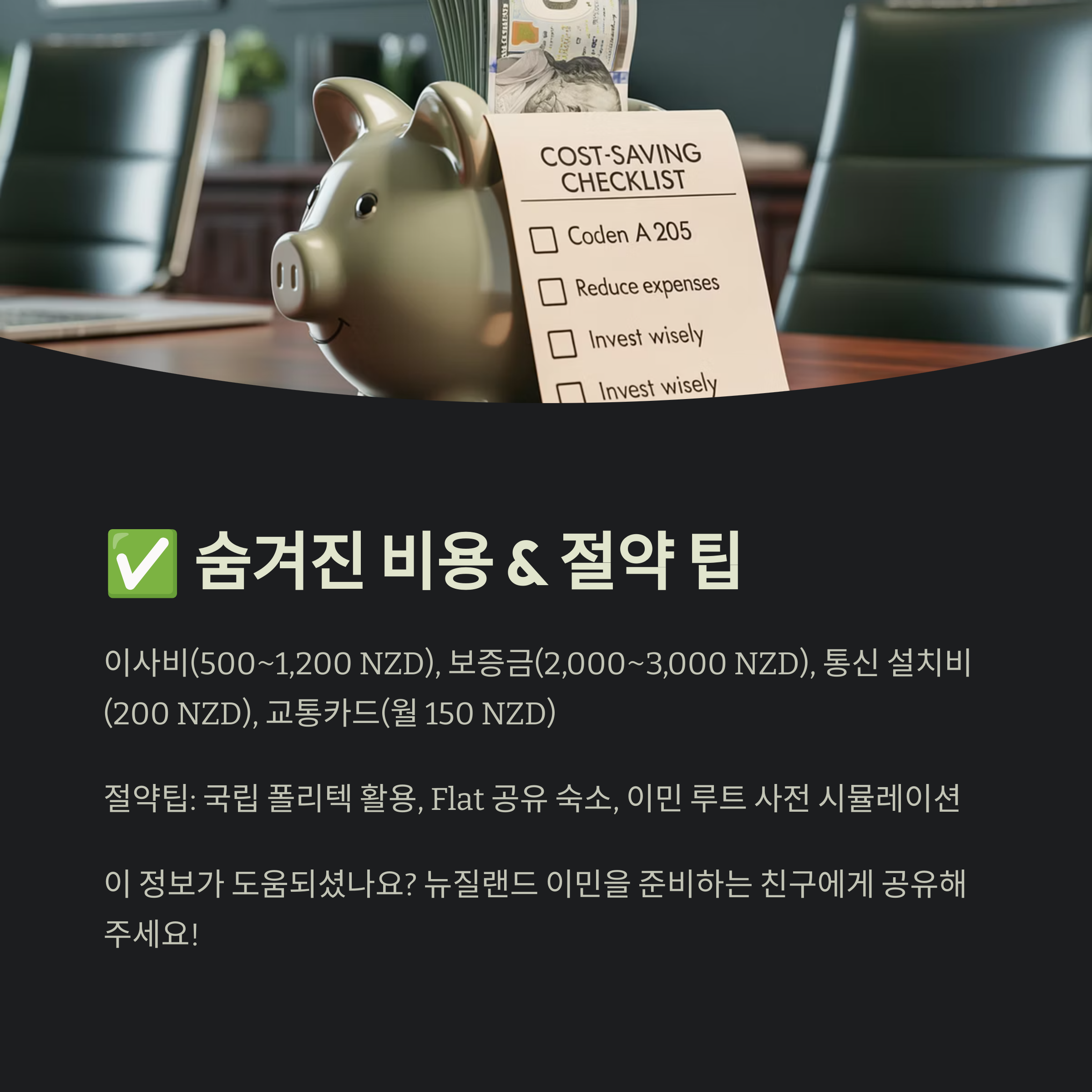 - 🧾 자금이체 및 세무 검토 비용: 3,000~6,000 NZD