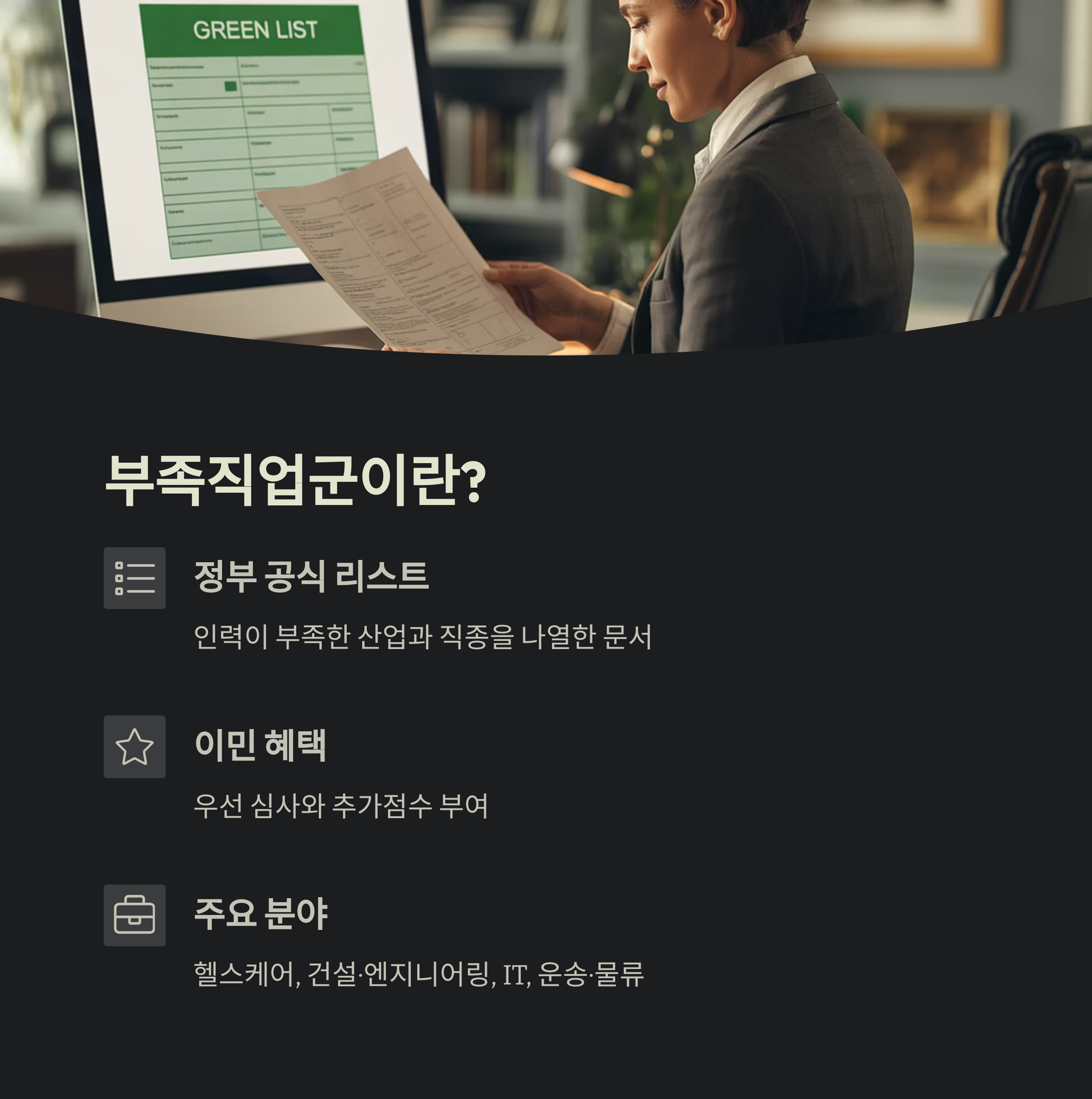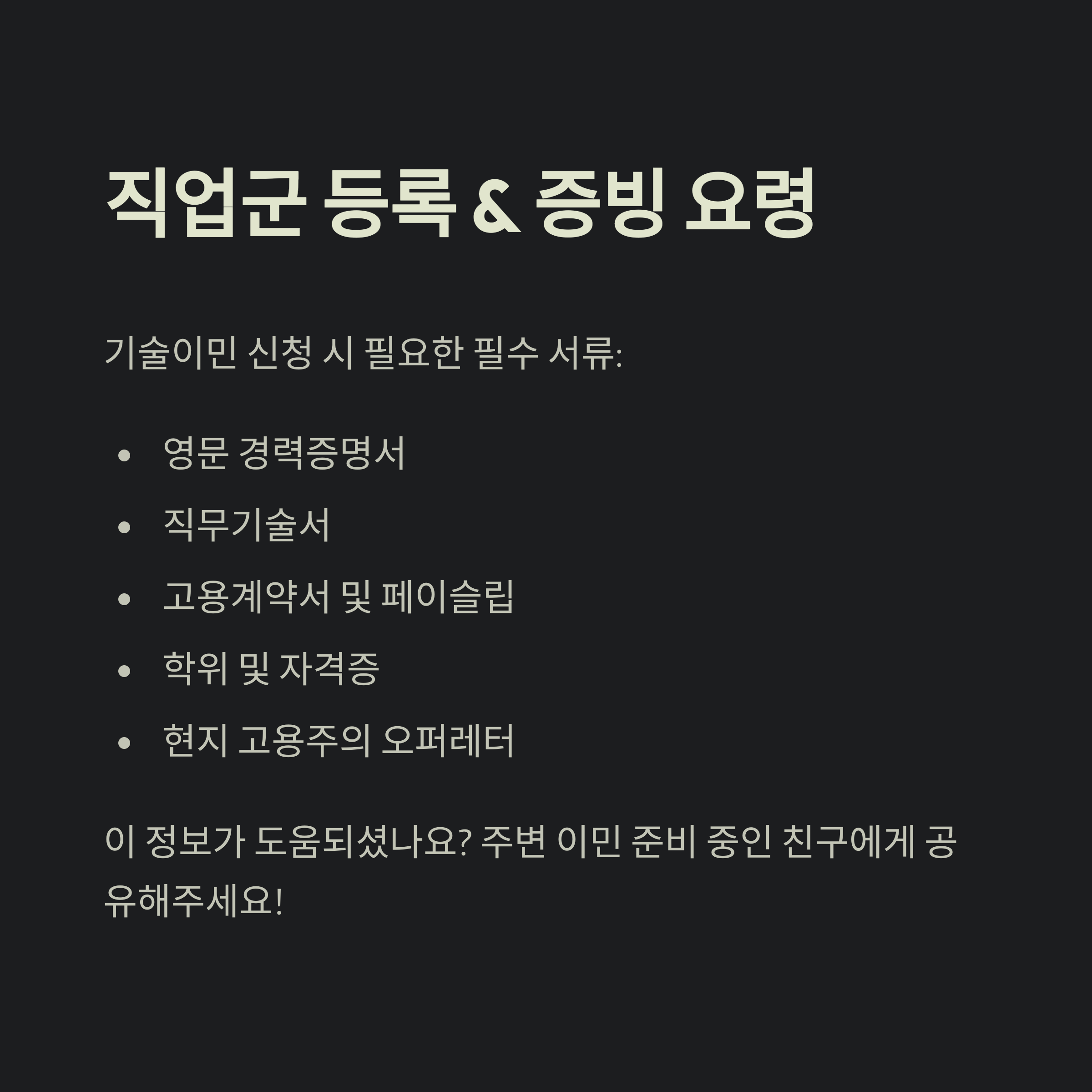 “내 직업이 포함되어 있지 않으면 무조건 불가능한가요?” ➡ 아닙니다! 고용 오퍼나 경력 기반 입증이 가능하면 리스트 외 직종도 도전할 수 있어요.